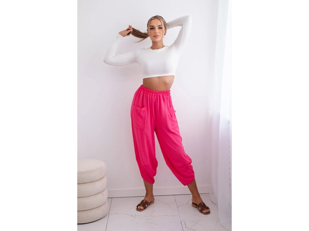 Široké nohavice s vreckami sú praktickou a štýlovou voľbou, ktorá spája pohodlie a módny dizajn. Tieto nohavice sú vyrobené z vysoko kvalitných materiálov a sú pohodlné na celodenné nosenie. Ich charakteristickým znakom sú široké nohy, ktoré dodávajú celému stylingu voľnosť a ľahkosť. Praktickosť a funkčnosť navyše dodávajú vrecká umiestnené v prednej časti nohavíc. Ideálne na rôzne príležitosti, od neformálnych výletov až po formálnejšie stretnutia, v týchto nohaviciach sa budete cítiť pohodlne a zároveň štýlovo. Veľkosť je univerzálna a bude vhodná pre ženy, ktoré nosia veľkosť S, M alebo L.