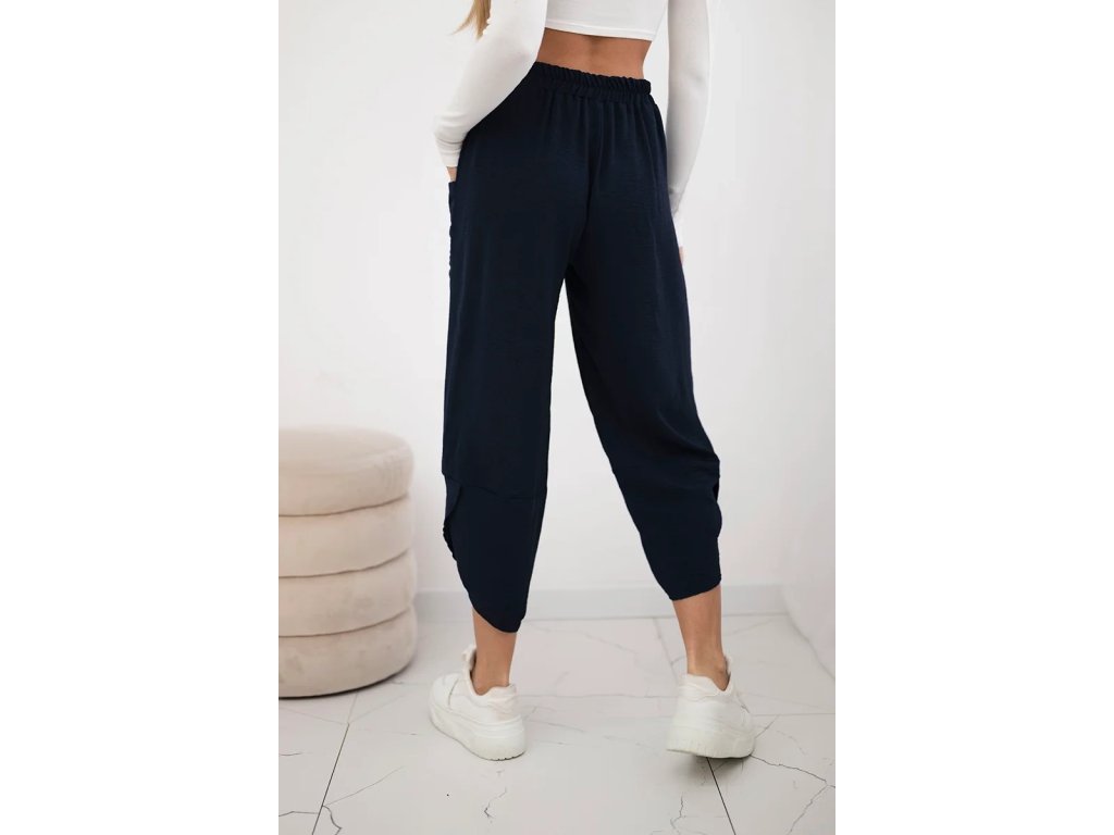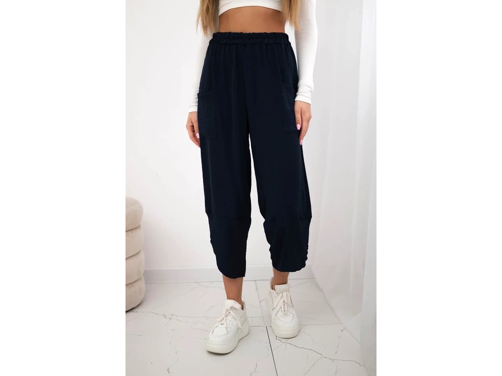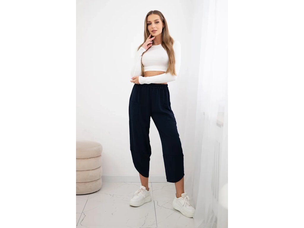 Letné nohavice Oria zaujmú svojim orientálnym strihom. Vrchná časť je širšia a smerom nadol sa zužuje. Ich charakteristickým znakom sú široké nohavice v asymetrickom prevedení, ktoré dodávajú celému stylingu voľnosť a ľahkosť. V páse majú všitú gumičku, ktorá zabezpečuje pohodlné nosenie a aj to, že sa vám nohavice pekne prispôsobia a nebudú vás obmedzovať v pohybe. Praktickosť a funkčnosť navyše dodávajú nohaviciam hlbšie nakladané vrecká umiestnené v prednej časti nohavíc. Poslúžia vám na ukrytie mobilu, či iných nevyhnutných drobností. Použitý materiál je mimoriadne ľahký, vzdušný a príjemný k pokožke. Tým, že obsahuje viskózu je takmer nekrčivý a dobre saje pot, čo v lete jednoznačne oceníte.