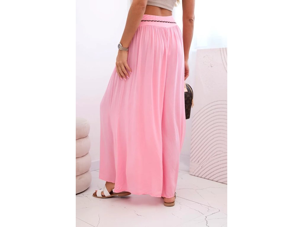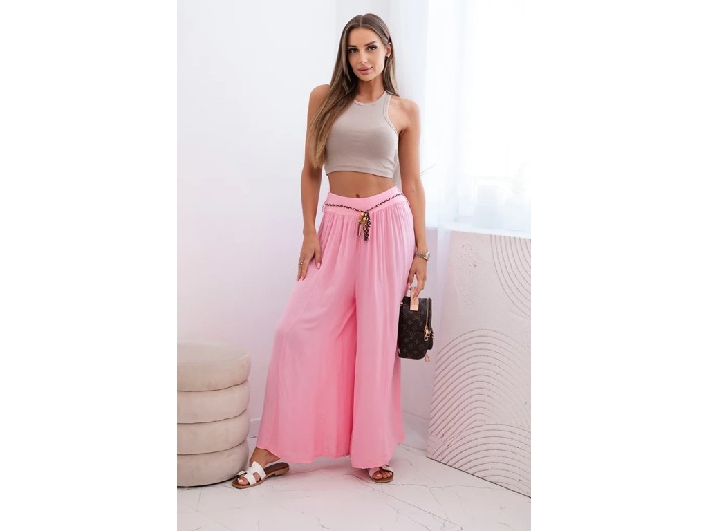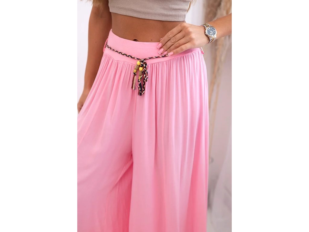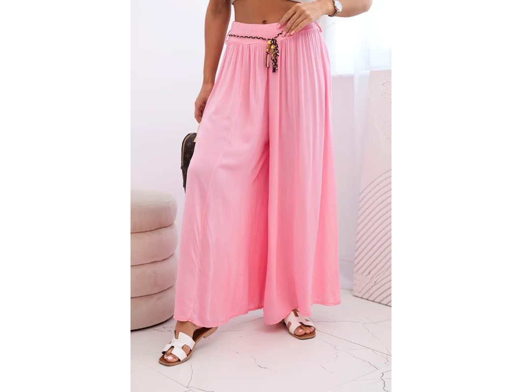 Doprajte si slobodu pohybu a jedinečný vzhľad. Oblečte si dámske široké nohavice Zellda, ktoré vás očaria svojim širokým strihom ako aj trendovým opaskom v boho štýle. Vďaka ich dizajnu vytvoria pôsobivý a zároveň pohodlný letný outfit.Tieto široké letné nohavice majú široký pás s jemným riasením, ktorý sa krásne prispôsobí postave a zabezpečí komfort počas celého dňa. Letné nohavice Zellda sú ušité z ľahkej, vzdušnej viskózy, ktorá je príjemná k pokožke, dobre saje pot a len minimálne sa krčí.