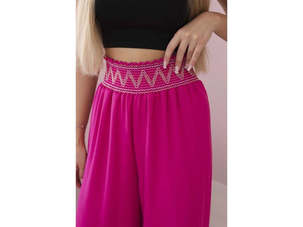 Doprajte si slobodu pohybu a jedinečný vzhľad. Oblečte si dámske široké nohavice Orion, ktoré vás očaria svojim širokým strihom. Vďaka ich dizajnu, vytvárajú tieto letné nohavice pôsobivý a zároveň pohodlný letný outfit.Tieto široké letné nohavice majú v páse výrazný lem s viacerými všitými gumičkami, ktoré sa krásne prispôsobia postave a zabezpečia komfort počas celého dňa. Sú ušité z ľahkého, vzdušného materiálu, ktorý je príjemný k pokožke, dobre saje pot a len minimálne sa krčí.