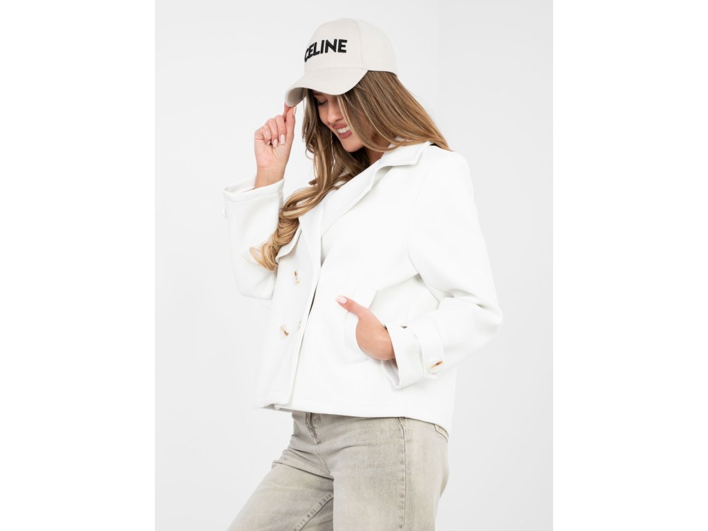 Doprajte svojmu šatníku dotyk luxusu s prechodným kabátom Teria, ktorý vás očarí svojou jemnou semišovou textúrou. Tento krátky kabát v dĺžke do pása so štýlovým dvojradovým zapínaním a klasickým véčkovým výstrihom s klopom je navrhnutý pre modernú ženu, ktorá hľadá rovnováhu medzi eleganciou a mestským štýlom. Je ideálnym spoločníkom do chladnejšieho jarného počasia, kedy vás príjemne zahreje bez toho, aby ubral na ľahkosti vášho outfitu.