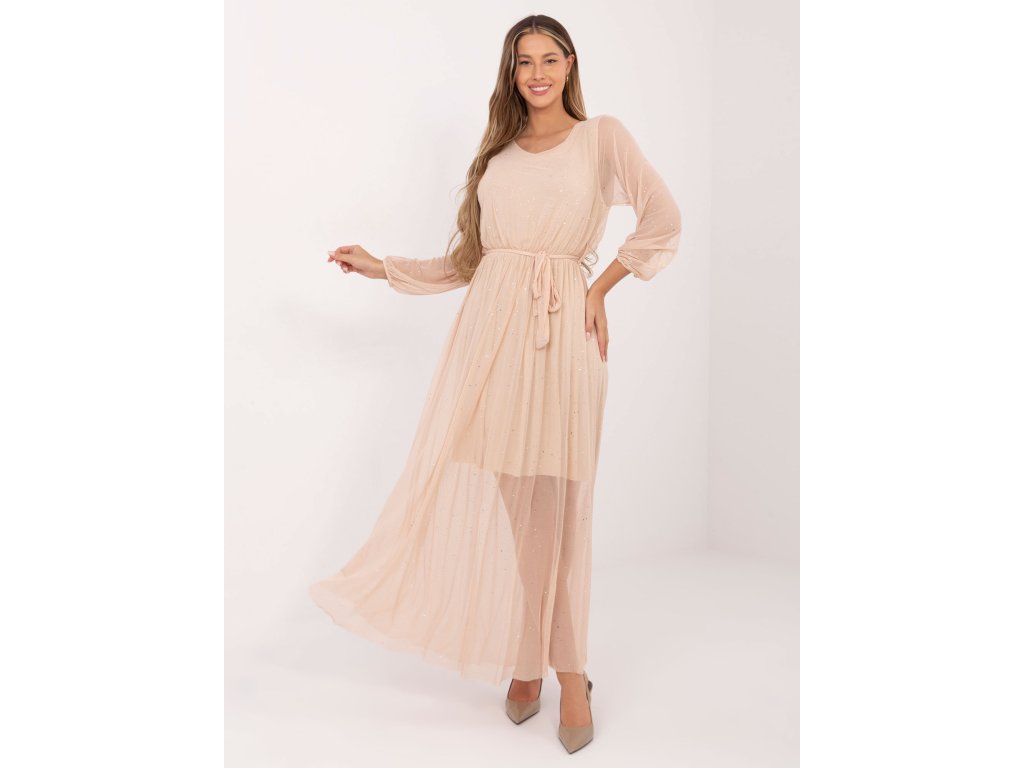 Elegantné dámske šaty Auron béžové (Farba béžová, Veľkosť univerzálna) Kód: 5906694069857
