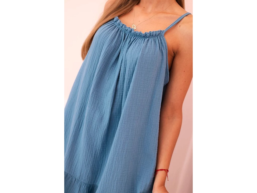 Dámske letné šaty na ramienka Pozana džínsová modrá