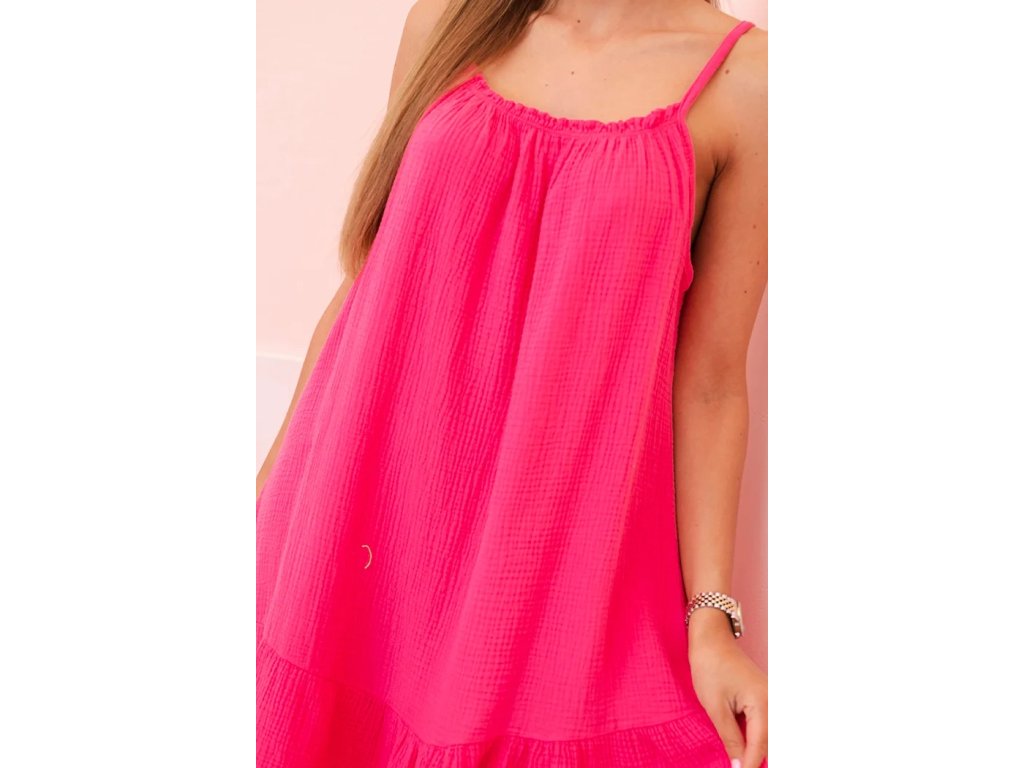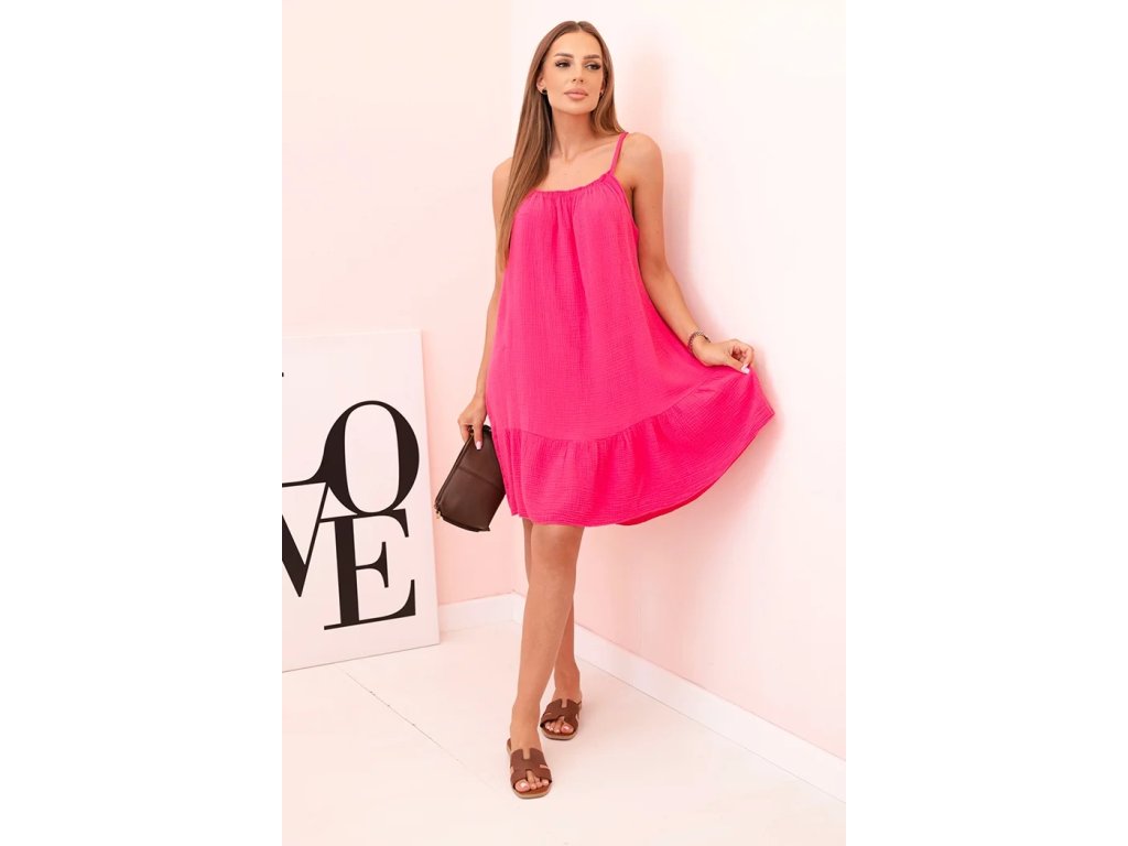 Objavte ľahkosť letných dní s dámskymi letnými šatami na ramienka Pozana, ktoré spájajú jednoduchosť, pohodlie a nežný romantický detail. Letné šaty v dĺžke po kolená majú áčkový strih, ktorý lichotí postave a poskytuje voľnosť pohybu. Ich dolný lem zdobí jemný volán, ktorý dodáva modelu hravý a ženský výraz.Tieto letné šaty na ramienka sú ušité z ľahkého vzdušného bavlneného mušelínu, ktorý je príjemný na pokožke, dobre saje pot a zabezpečí vám komfort aj počas horúcich letných dní. Ich minimalistický dizajn z nich robí univerzálny kúsok pre každý deň.