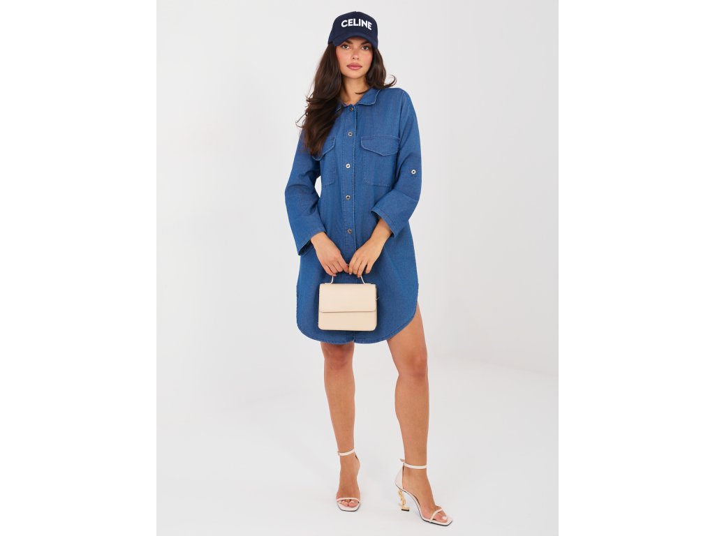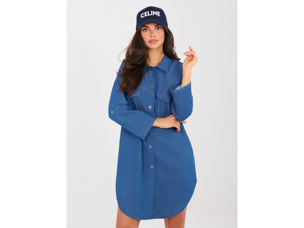 - štýlové dámske rifľové šaty v košeľovom prevedení