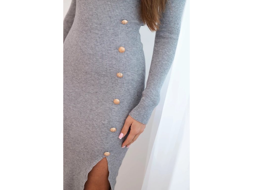 Štýlové a elegantné dámske úpletové šaty Ciliss v puzdrovom strihu, ktoré krásne kopírujú postavu a zvýrazňujú ženské krivky. Majú midi dĺžku po kolená, malý stojačik ku krku a dlhé rukávy, vďaka čomu sú ideálne na chladnejšie dni. Predný diel zdobia zlaté gombíky nad rozparkom, ktorý šatám dodáva ženský a sofistikovaný vzhľad.Vyrobené z jemne vrúbkovaného elastického úpletu, ktorý sa prispôsobí postave, je príjemný k pokožke a pohodlný na celodenné nosenie. Skvelo sa kombinujú s kabátom, vestou či čižmami — vytvoria tak dokonalý jesenný alebo zimný outfit.