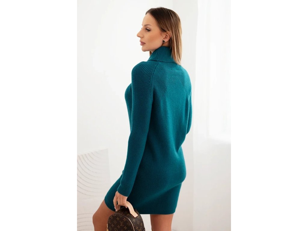 Dámske úpletové šaty s rolákom Asija tyrkysové