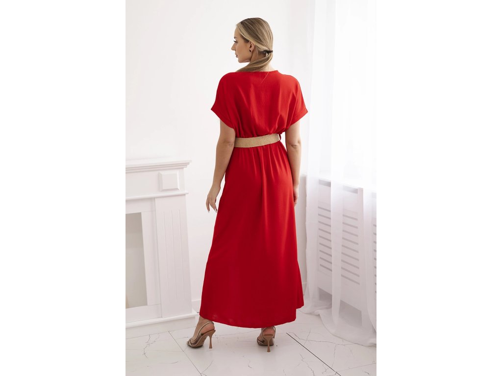 Tieto letné šaty majú áčkový strih s dĺžkou po členky.Krátke prinechané rukávy zamaskujú prípadné širšie ramená, alebo ochabnuté paže. Decentný véčkový výstih s prekladaným efektnom vám vyčaruje plnšie poprsie. Širšia sukňa je doplnená rozpakom na prednom diele, vďaka čomu bude vaše nohy príjemne ovievať jemný vánok počas chôdze. O tom, že tak môžete rafinovane odhaliť svoje sexi nôžky už ani nehovoríme. V páse sú šaty stiahnuté gumičkou a širším ozdobným opaskom, ktorý krásne kontrastuje s farbou šiat. Samotná farba rozšiari vašu pokožku a zvýrazní letné opálenie.- Ako vybrať, nosiť a kombinovať maxi šaty sa dozviete v článku na našom blogu.