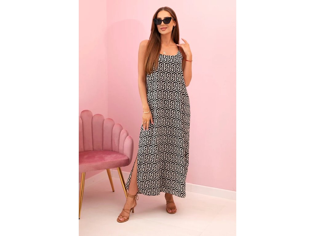 Vneste do svojho letného šatníka sviežosť a štýl s modelom Rizza– to sú dámske letné šaty navrhnuté pre ženy, ktoré milujú pohodlie, ale aj výrazný dizajn. Tieto dlhé letné šaty na ramienka majú jednoduchý strih s tenkými ramienkami a rozparkami po bokoch, ktoré dodávajú celému outfitu ľahkosť a ženskosť.Šaty očaria výraznou geometrickou potlačou po celom povrchu, ktorá z nich robí neprehliadnuteľný kúsok. Ušité sú z ľahkého vzdušného materiálu, ktorý krásne padá, je príjemný na dotyk a výborne sa nosí aj počas horúcich dní.