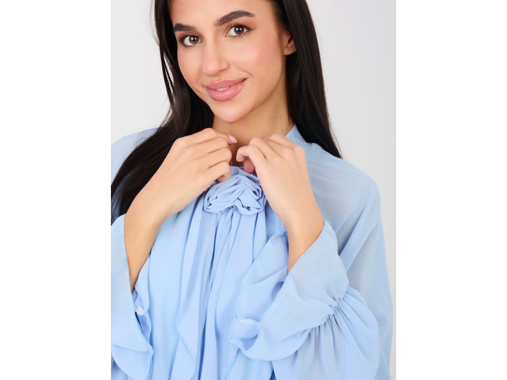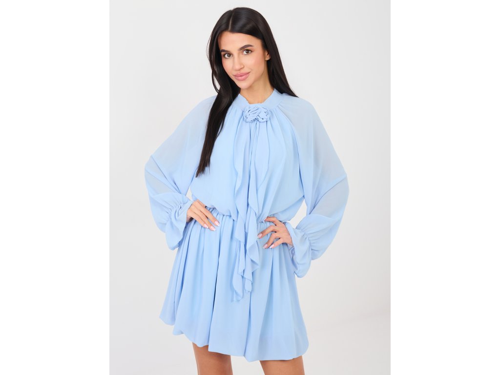 Elegantné áčkové šaty s volánom Tubin sú romantickým a ženským kúskom, ktorý rozžiari každý váš outfit. Šaty v áčkovom strihu a midi dĺžke po kolená majú voľný riasený strih, ktorý dodáva šatám jemný pohyb a elegantný vzhľad. Žabó a kvetinová aplikácia na dekolte podčiarkujú ich nežný a sofistikovaný charakter.Voľné rukávy sú na koncoch stiahnuté gumičkou, rovnako ako aj pás, čo jemne zvýrazní postavu a zachová komfortné nosenie. Šaty sú vyrobené z ľahkej viskózy, ktorá zaručuje pohodlie a slobodu pohybu. Tento model je ideálny na rodinné oslavy, párty či menšie spoločenské udalosti, ale využijete ho aj na bežné nosenie do mesta alebo na rande, keď sa chcete cítiť výnimočne.