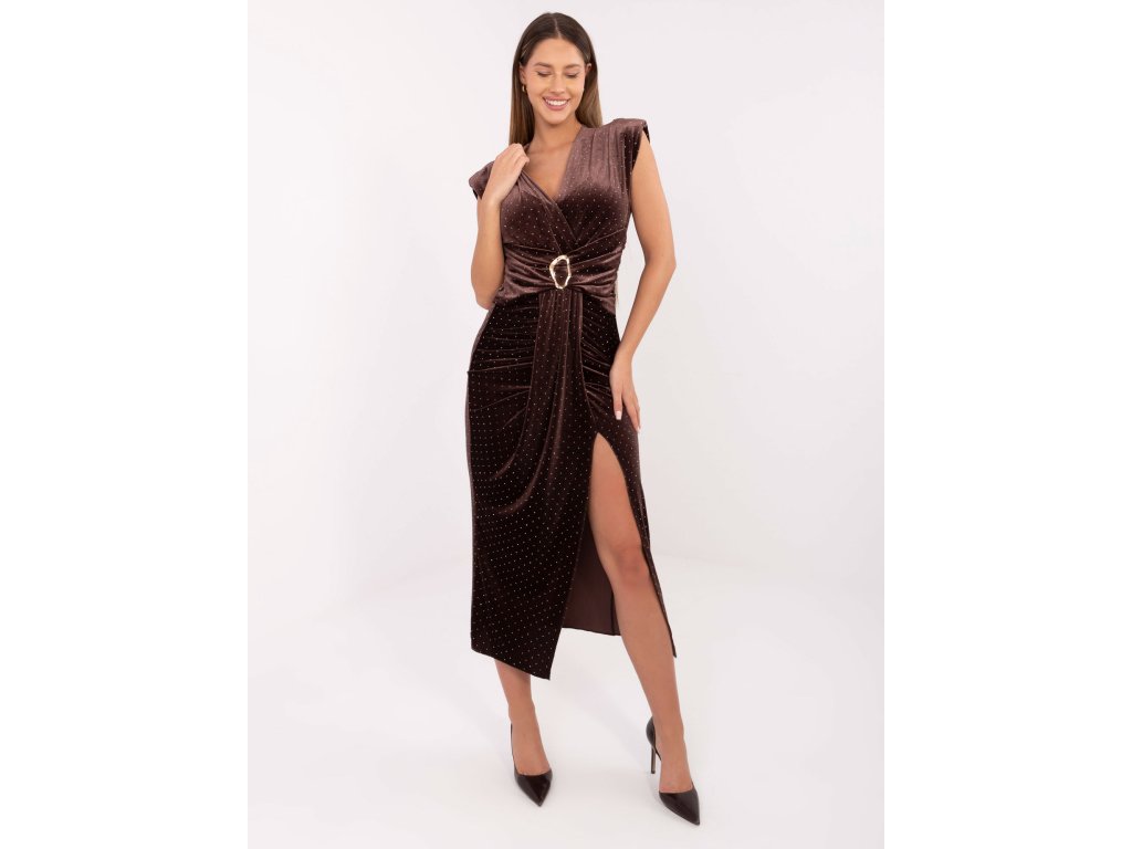 Elegantné dámske šaty Auron hnedé (Farba hnedá, Veľkosť univerzálna)