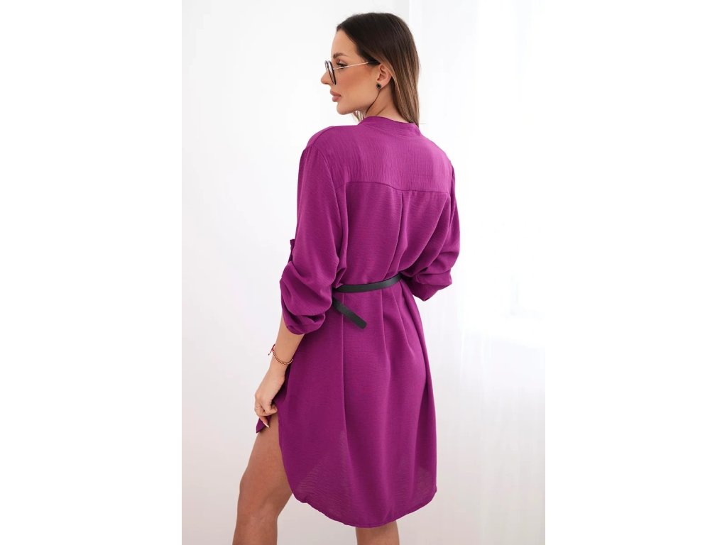 Dámske košeľové šaty Stela sú presne tým kúskom, ktorý Vám dodá pocit ženskosti, voľnosti a moderného štýlu v každej situácii. Mini dĺžka do polovice stehien pôsobí sviežo a mladistvo, zatiaľ čo véčkový výstrih a opasok v páse krásne zvýraznia siluetu bez toho, aby šaty pôsobili príliš formálne. Voľný strih je pohodlný, vzdušný a lichotivý pre postavu.Dlhé rukávy si môžete jednoducho podhrnúť a zopnúť na 3/4 dĺžku, vďaka čomu si šaty prispôsobíte podľa počasia aj nálady. Oblúkovito strihaný dolný lem a mierne predĺžená zadná časť dodávajú modelu moderný a premyslený vzhľad. Materiál je ľahký, vzdušný a minimálne krčivý – ideálny na celodenné nosenie.
