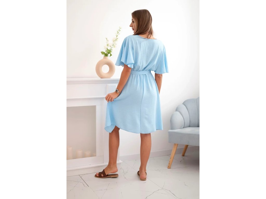 Véčkový výstrih so zavinovacím efektom krásne zvýrazní dekolt, zatiaľ čo krátke volánové rukávy dodávajú šatám romantický nádych. V páse sa nachádza elastická gumička doplnená viazačkou, ktorá vytvaruje postavu a zvýrazní ženské krivky. Áčková sukňa je voľná a vzdušná, vďaka čomu pôsobí ľahko a prirodzene.
