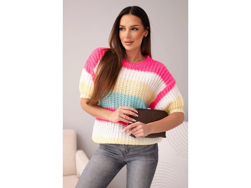 Dámsky pruhovaný sveter s krátkym rukávom ALLA fuksia