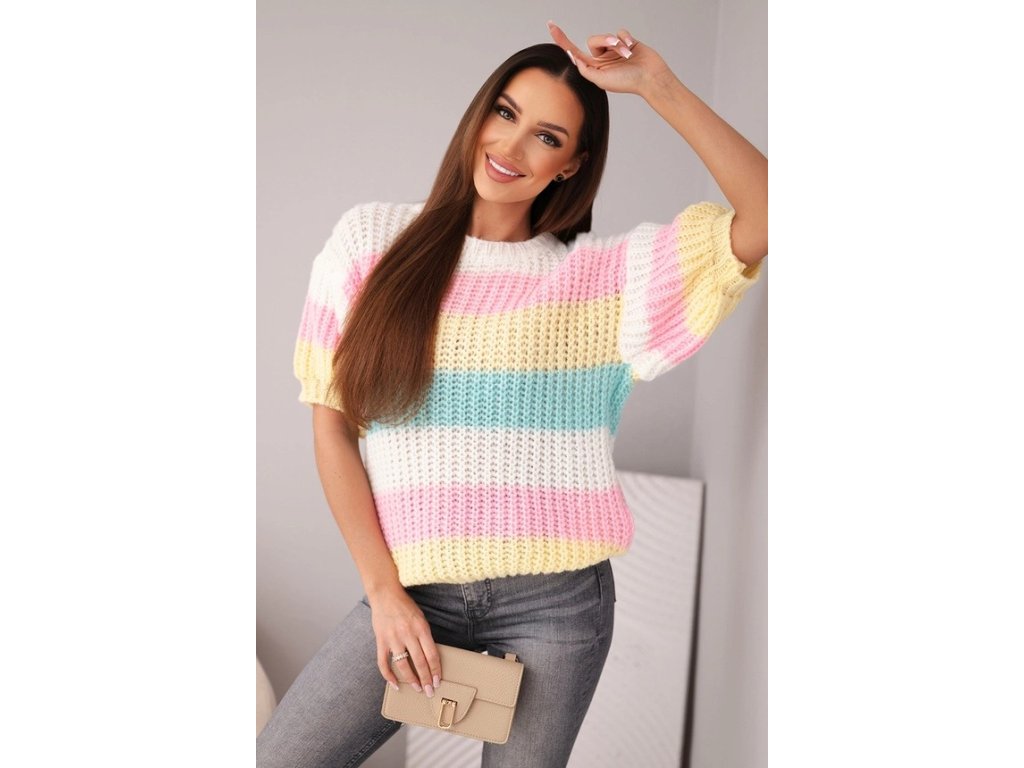 Dámsky pruhovaný sveter s krátkym rukávom Alla - moderný, štýlový, jedinečný