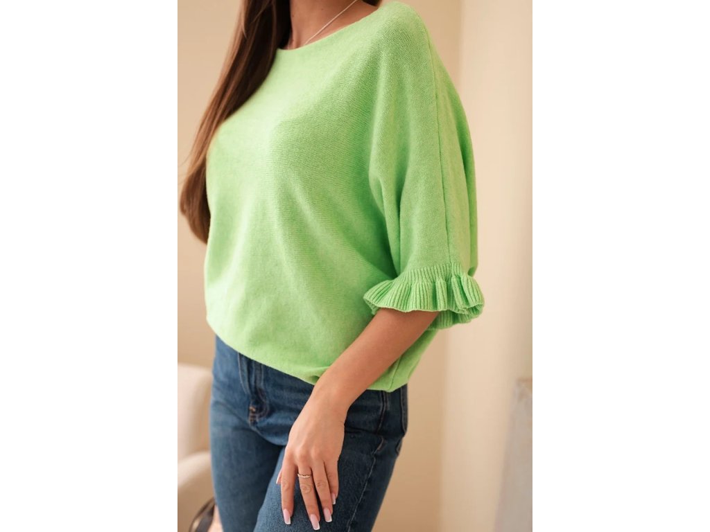 - dámsky sveter s krátkym rukávom a volánmi