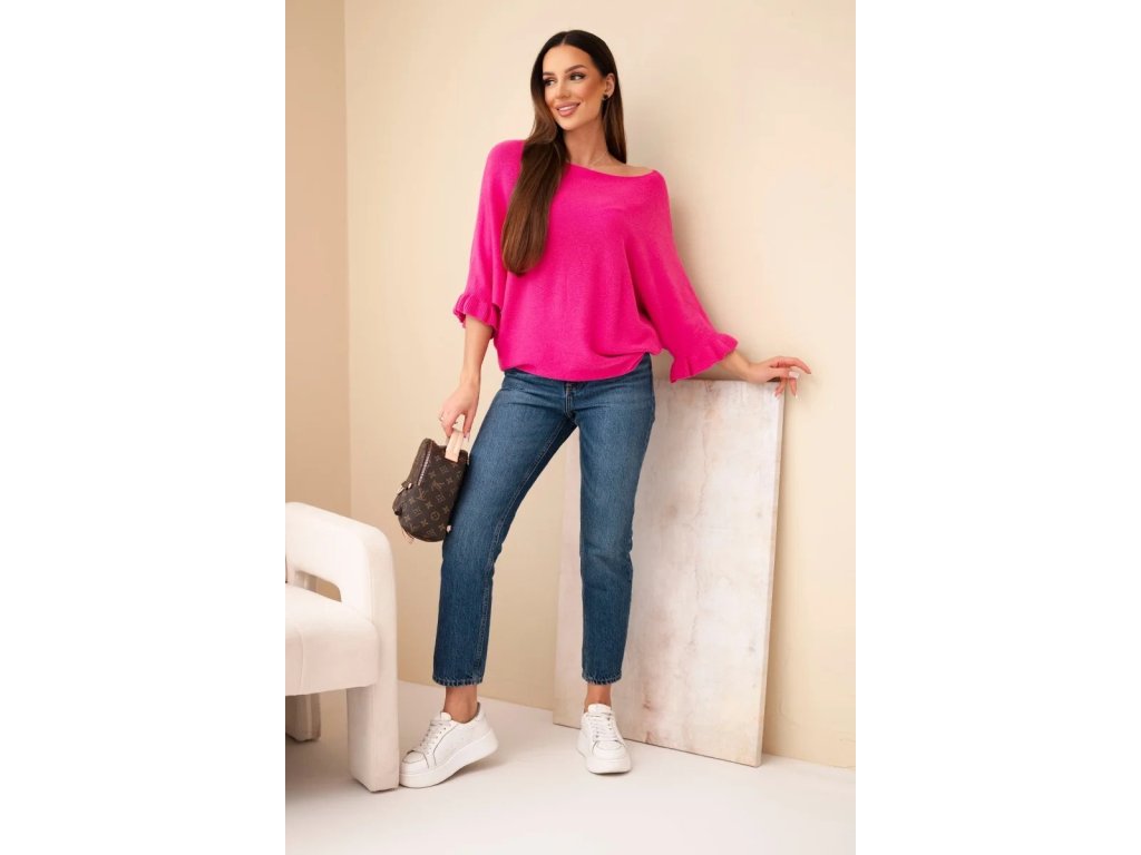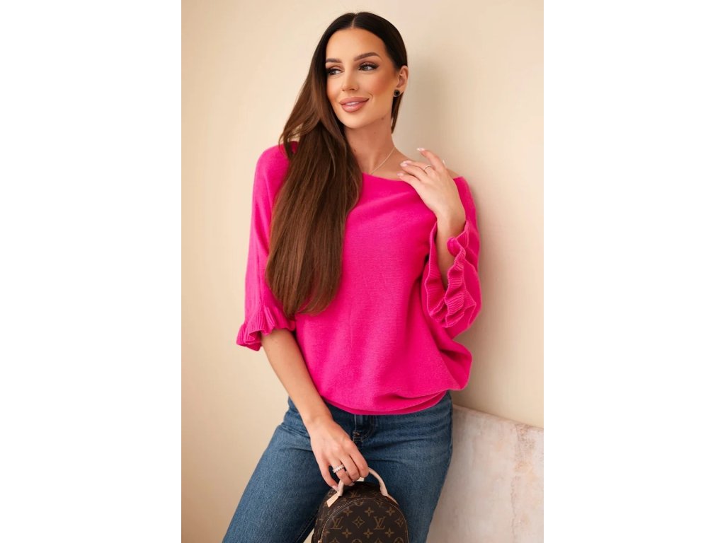 Dámsky sveter s krátkymi rukávmi Uršula fuksiový