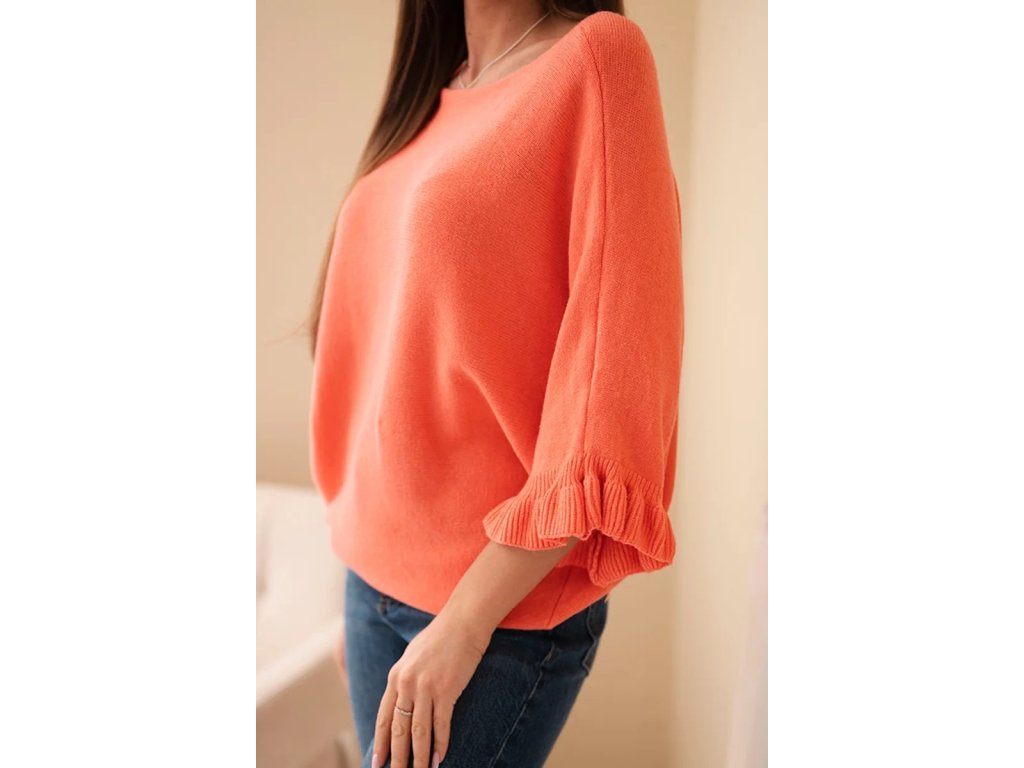 - dámsky sveter s krátkym rukávom a volánmi