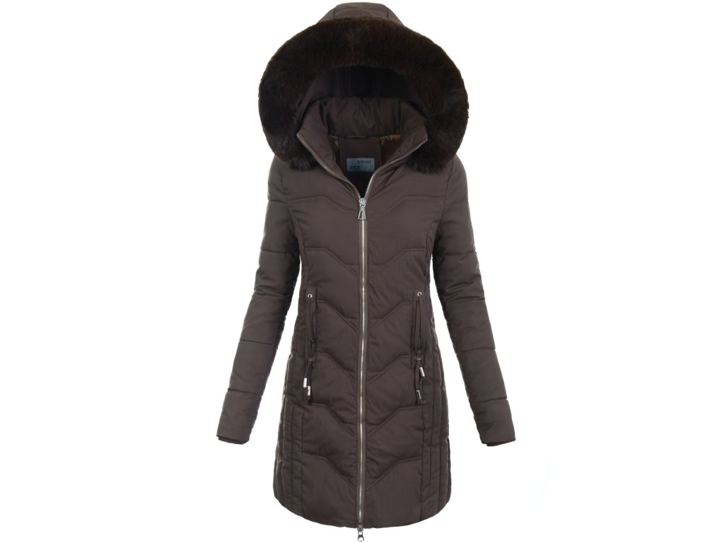 Odopínateľný kožušinový lem a kapucňa – variabilný štýl podľa potreby.