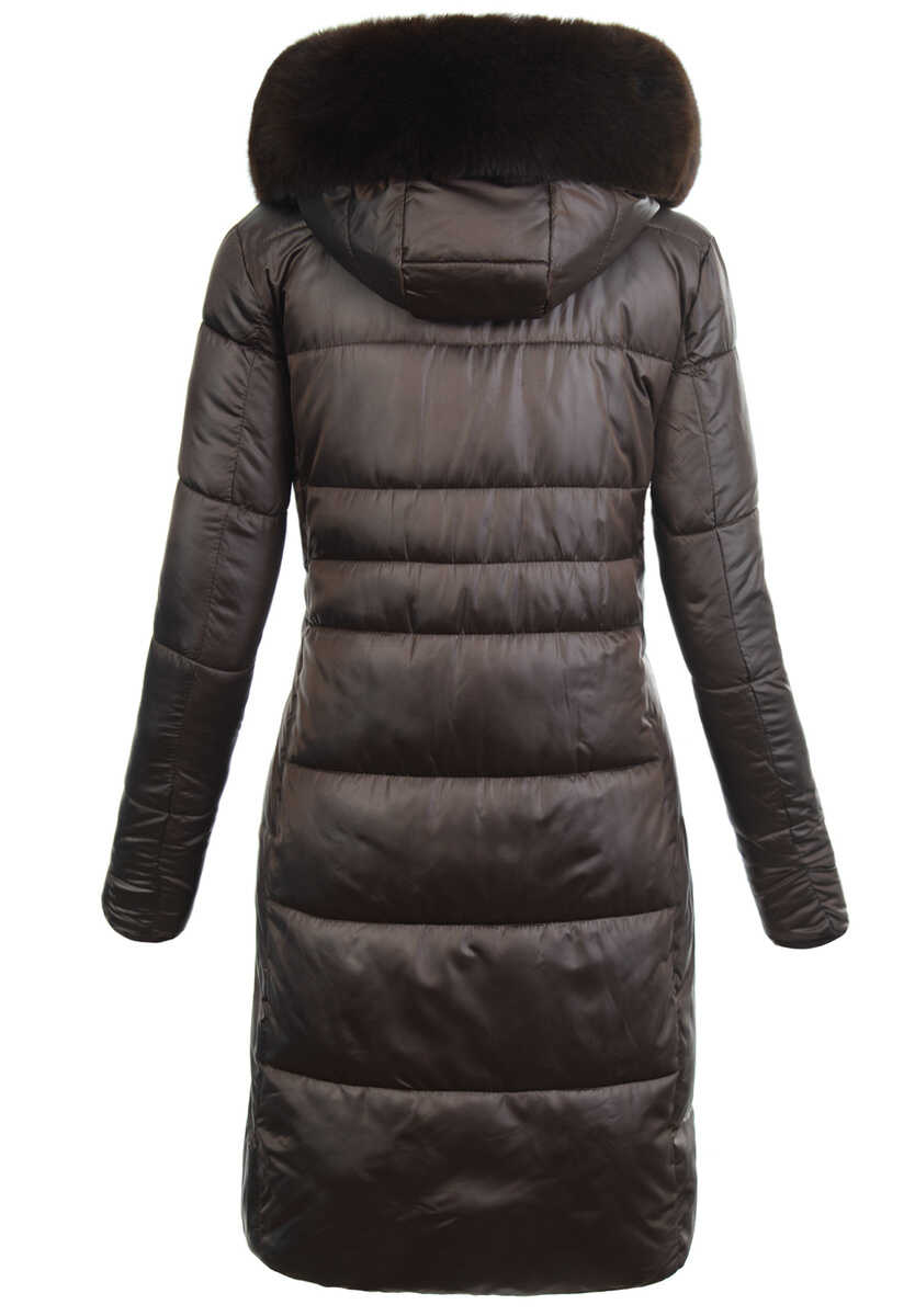 Dámska dlhá zimná bunda s kapucňou Jolanta čokoládová hnedá 8591