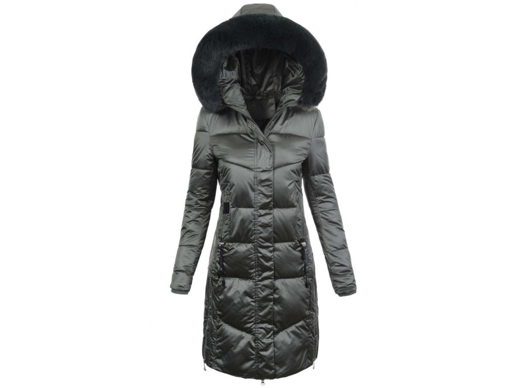 Dámska dlhá zimná bunda s kapucňou Jolanta kaki