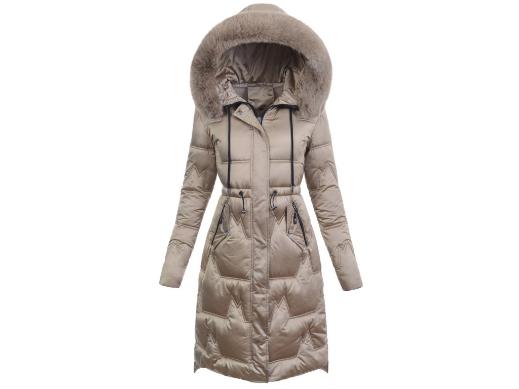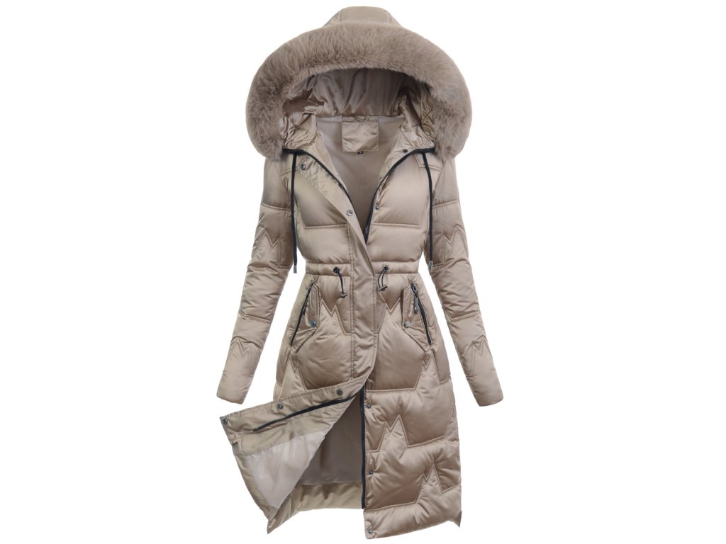 Dámska dlhá zimná bunda s kapucňou Patrícia béžová