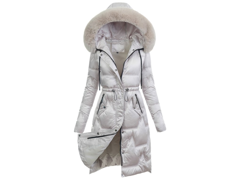 Dámska dlhá zimná bunda s kapucňou Patrícia biela