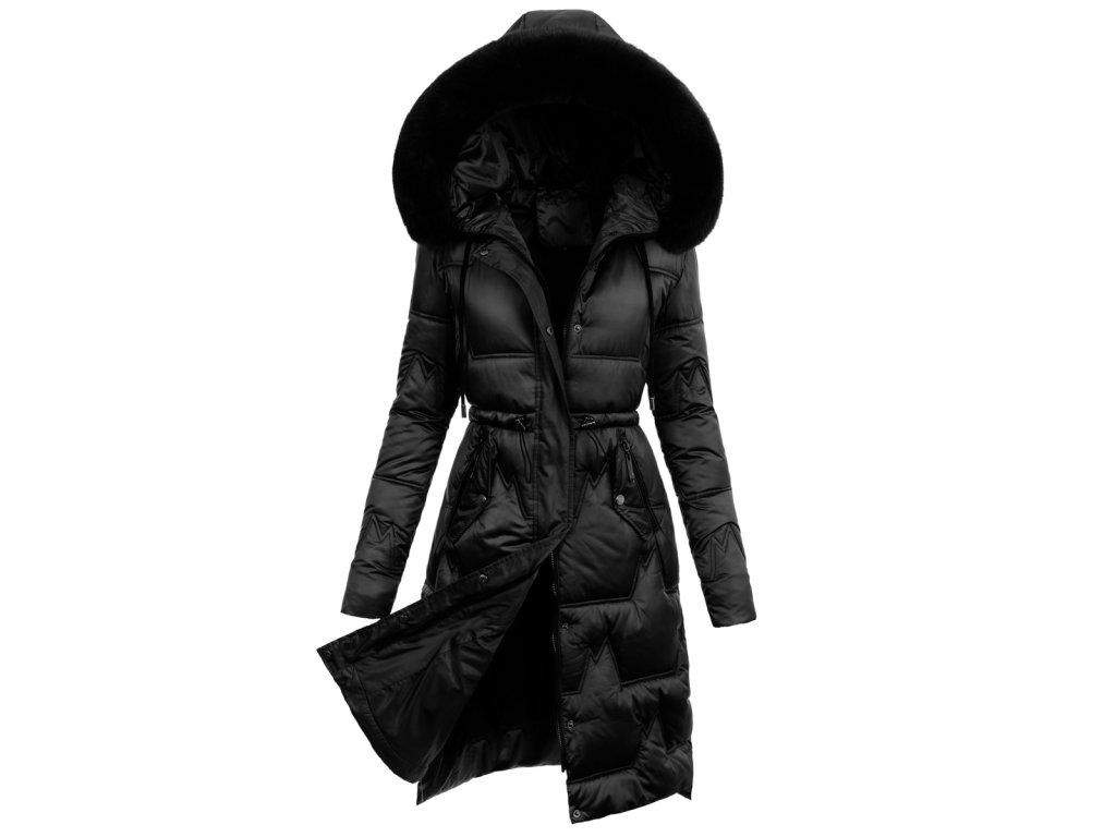 Dámska dlhá zimná bunda s kapucňou Patrícia čierna