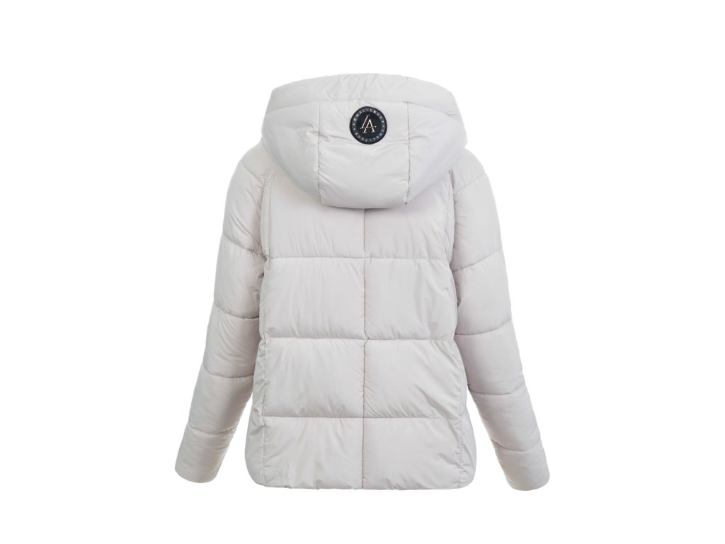 Bunda má veľkú odnímateľnú kapucňu doplnenú sťahujúcimi šnúrkami, vďaka čomu ju môžete prispôsobiť podľa potreby. Zapína sa na zips so stojačikom ku krku, ktorý chráni pred chladom, a navyše je ukrytý pod gombíkovou légou pre čistý, elegantný vzhľad.