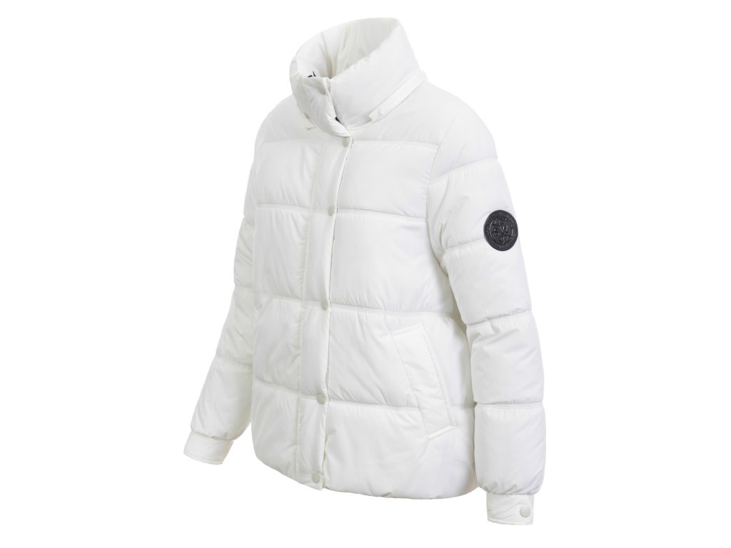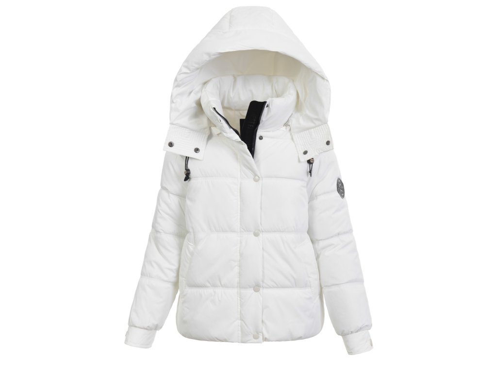 Krátka dámska zimná bunda s kapucňou Marlena biela- štýlová bunda na zimu