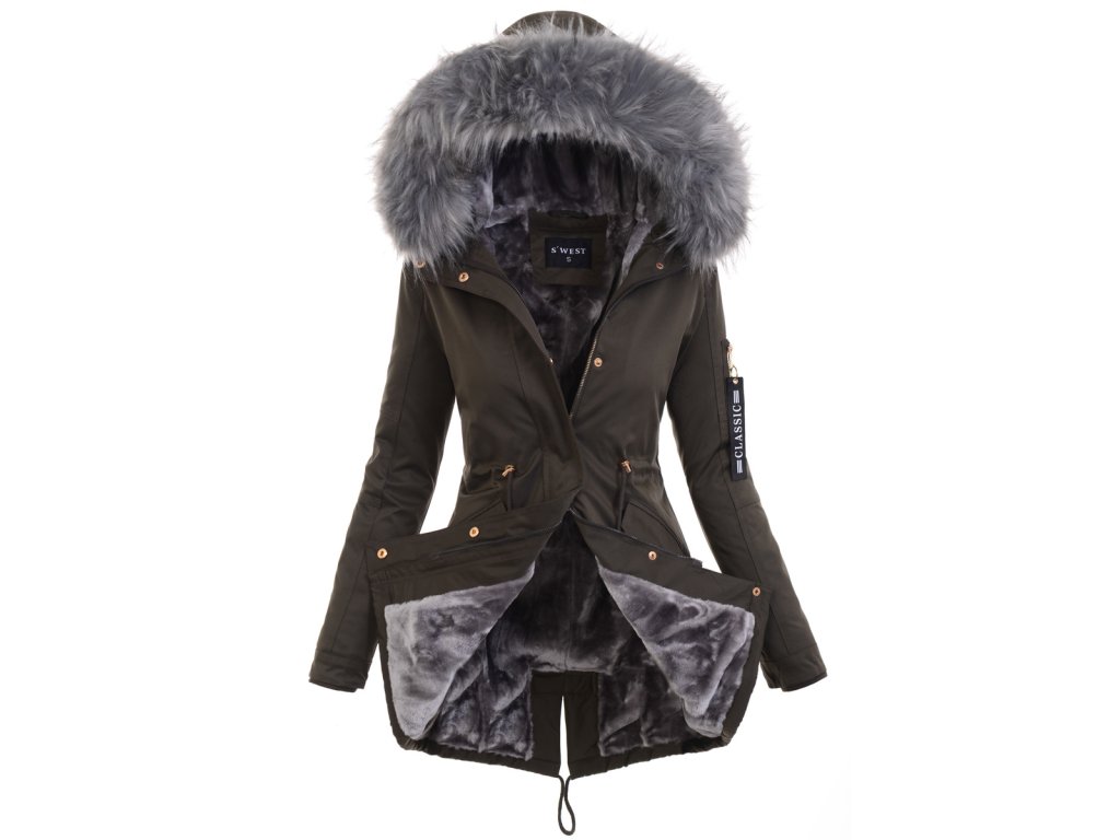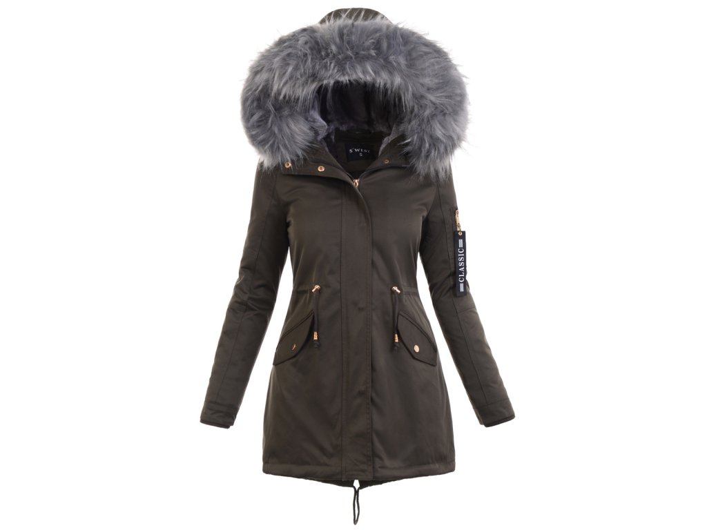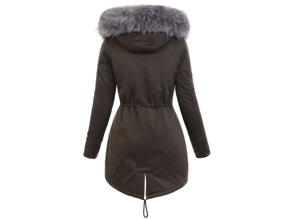 Dámska zimná bunda parka s kožušinou 6037 kaki