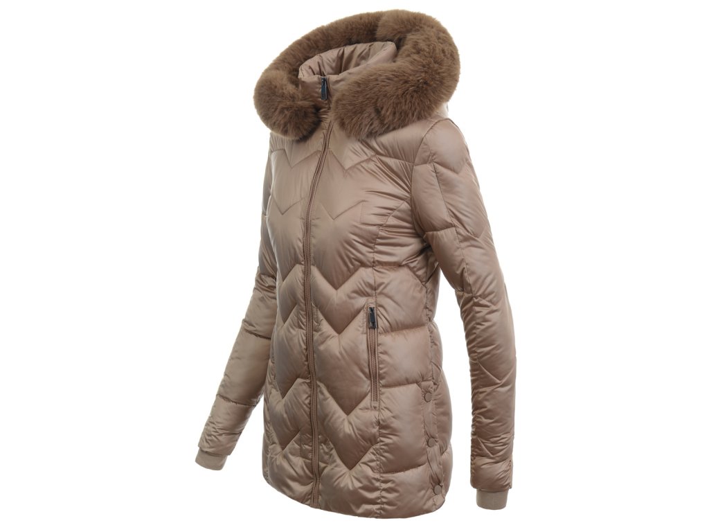 Bunda má veľkú kapucňu lemovanú efektnou kožušinou, ktorá jej dodáva luxusný vzhľad. Kapucňu aj kožušinový lem je možné jednoducho odopnúť, takže si môžete prispôsobiť štýl podľa počasia alebo nálady.