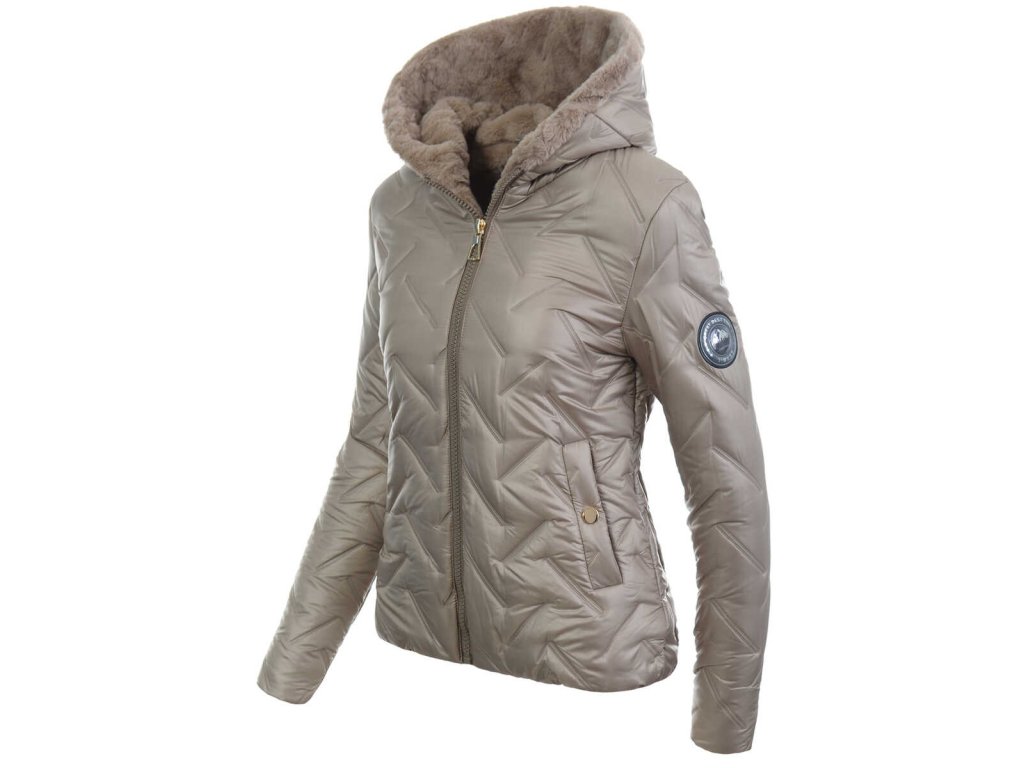Dámska zimná bunda Regina je elegantná a praktická krátka zimná bunda v dĺžke pod zadok, ktorá krásne kopíruje postavu a pritom ju zbytočne nerozširuje. Bunda je vybavená veľkou kapucňou pevne prišitou k bunde, zapínaním na zips a dvomi bočnými vreckami so zapínaním na nity. Z vnútornej strany je kvalitne zateplená jemným kožúškom vo farbe bundy, vďaka čomu poskytuje maximálne pohodlie a hrejivosť počas chladných zimných dní. Moderné geometrické prešívanie dodáva modelu originálny vzhľad.