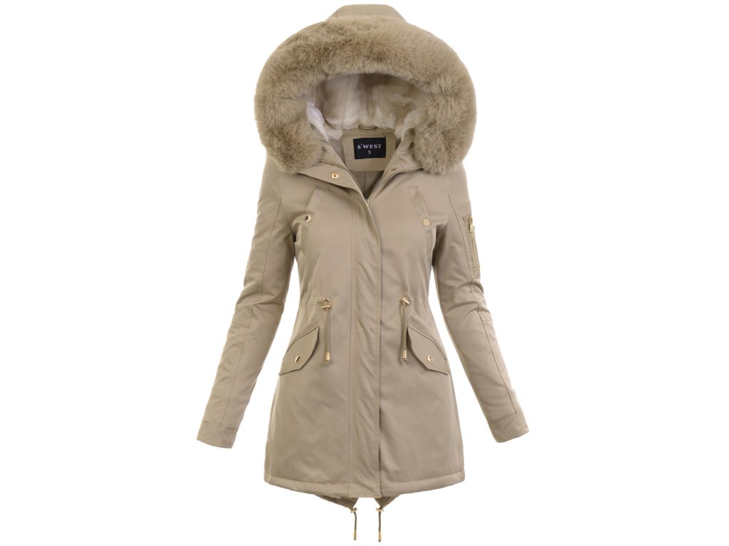 Dámska zimná parka s kapucňou Anastazia béžová