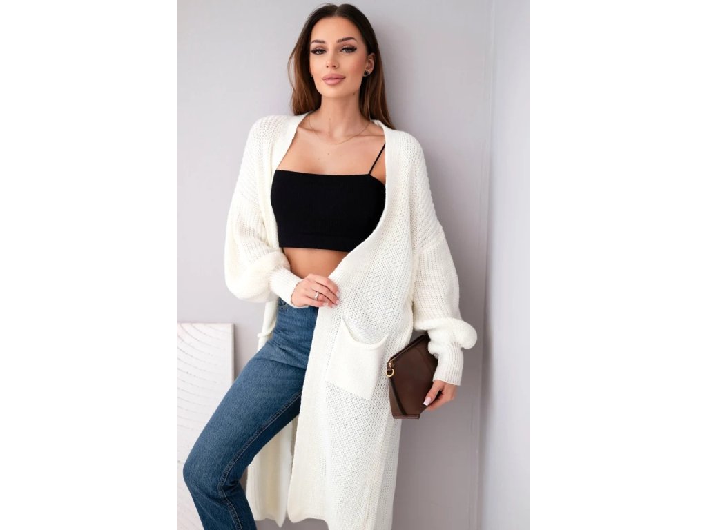 Elegantný dámsky kardigan Idda v predĺženej dĺžke po členky je ideálnym kúskom do chladnejších dní. Tento dlhý sveter zaujme nielen svojou výraznou dĺžkou, ale aj jemným vypletaným vrúbkovaným vzorom, ktorý dodáva outfitu šmrnc a ľahko sa kombinuje s ďalšími kúskami vášho šatníka.Kardigan má oversize strih a pohodlné voľné rukávy, doplnené o dve praktické bočné vrecká. Vyrobený z mäkkého akrylového materiálu, ktorý je príjemný na dotyk, jemný k pokožke a zároveň výborne zahreje. Vďaka svojej dĺžke môže v prechodnom období poslúžiť aj ako ľahká náhrada za kabát.