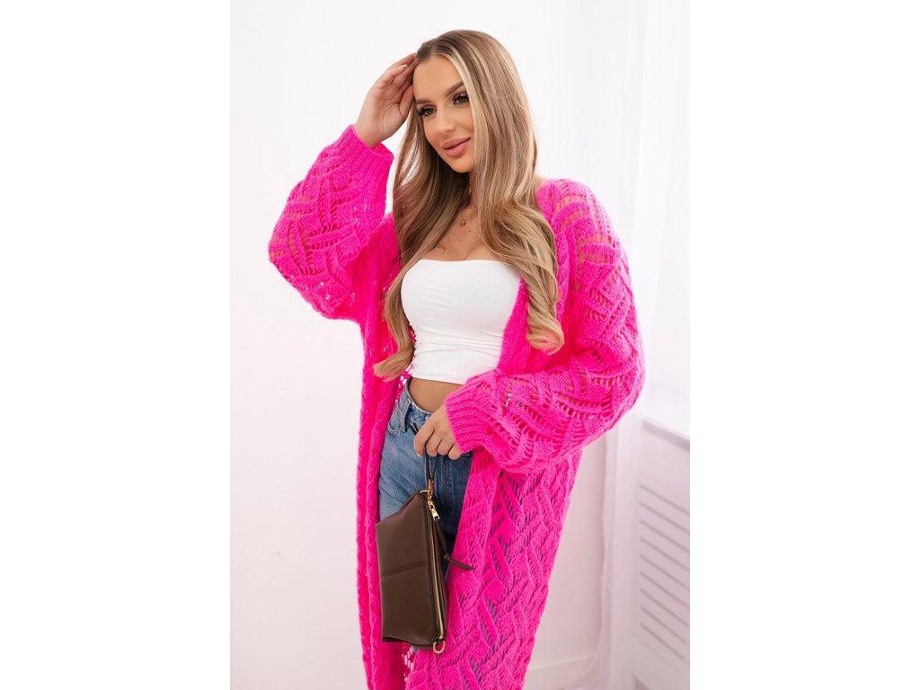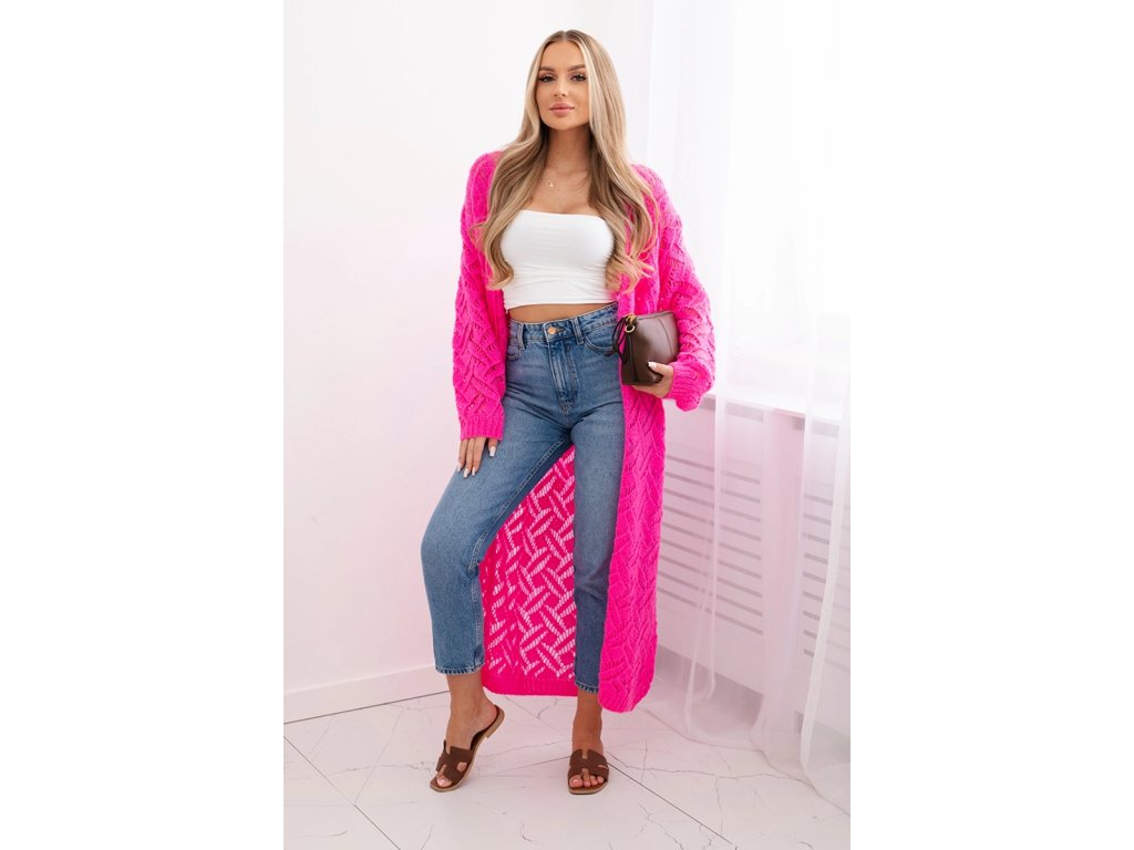 Dámsky dlhý sveter/kardigan Monita ružová neónová