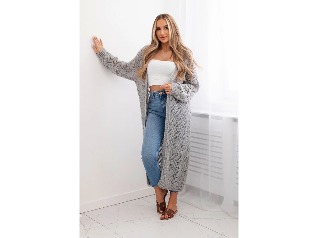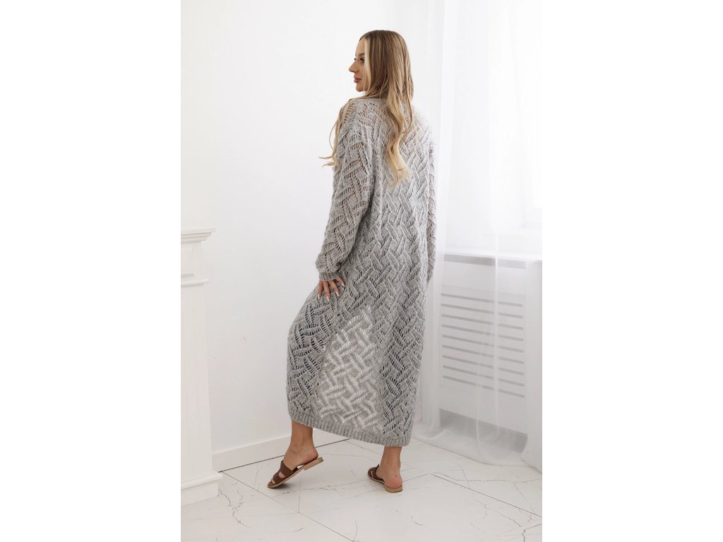 Dámsky sveter Monita v predĺženej dĺžke po členky je dokonalým spojením štýlu, pohodlia a luxusných materiálov. Tento dlhý kardigan zaujme svojím dierkovaným vypletaným vzorom, ktorý pôsobí moderne a originálne a zároveň ľahko doplní rôzne štylizácie – od ležérnych až po elegantné.Sveter má oversize strih, ktorý poskytuje maximálne pohodlie a voľnosť pohybu. Je vyrobený z kvalitnej zmesi mohéru a merino vlny, vďaka čomu je mimoriadne jemný k pokožke, príjemne hrejivý a zároveň ľahký na nosenie.