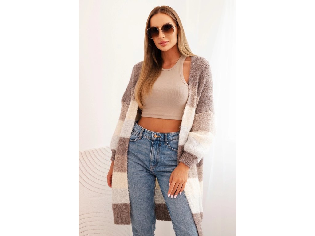 - Trendový pruhovaný kardigán v dĺžke po kolená
