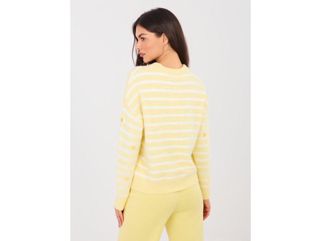 Dámsky sveter Lucil je štýlovým kúskom, ktorý vnesie do vášho šatníka jemnú hravosť a ženský šarm. Pruhovaný dizajn je doplnený decentnými srdiečkami, vďaka čomu sveter pôsobí moderne, no zároveň elegantne. Klasický strih v dĺžke do pása lichotí postave a je ideálny na každodenné nosenie.