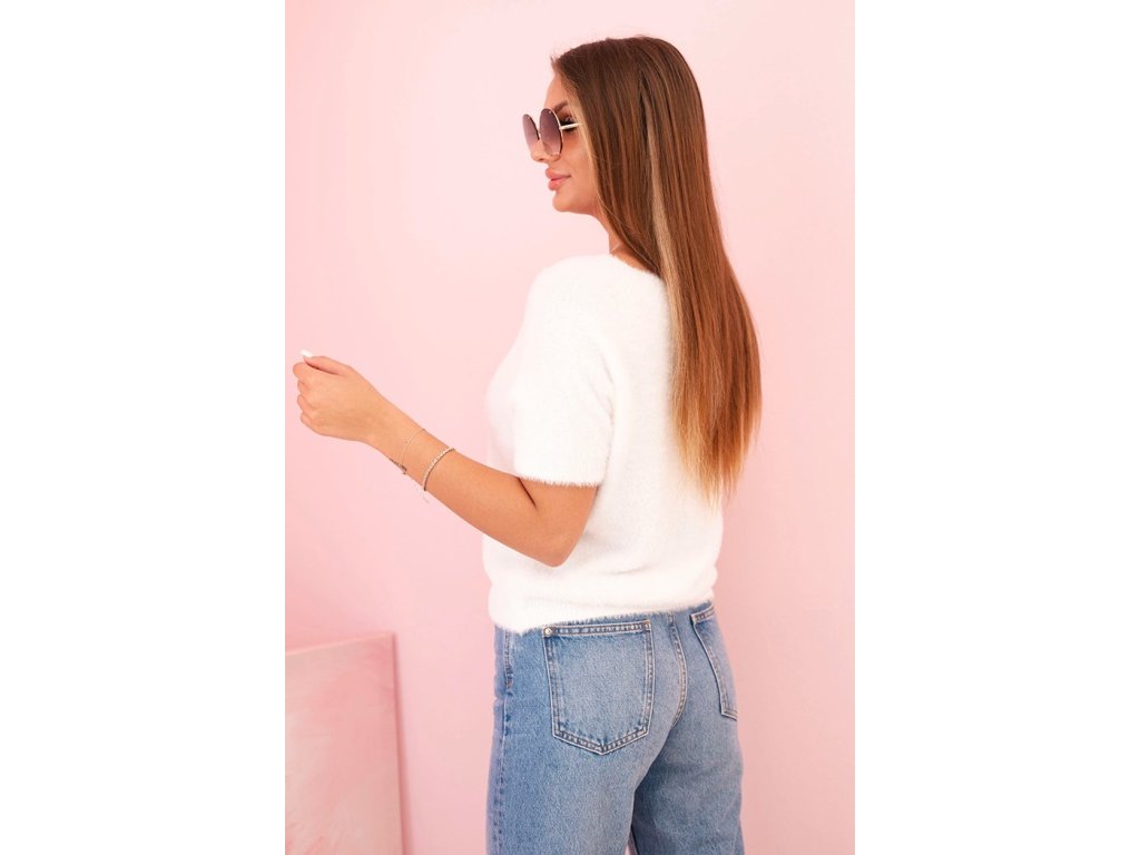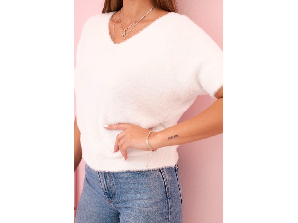 - Dámsky pulóver s krátkymi rukávmi a véčkovým výstrihom