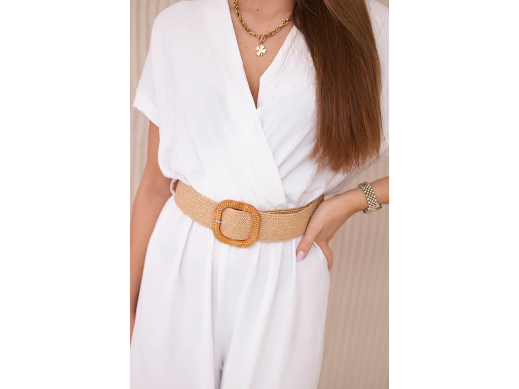 V páse je overal doplnený opaskom, ktorý krásne zvýrazní siluetu a podčiarkne ženské krivky. Ľahký a vzdušný materiál je ako stvorený na teplé dni – je príjemný k pokožke a umožní vám cítiť sa pohodlne po celý deň.