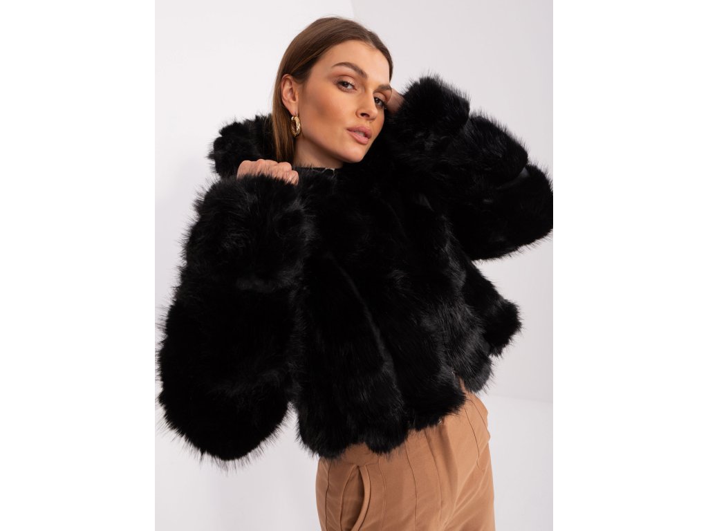 Krátka dámska kožušinová bunda s kapucňou Manita čierna