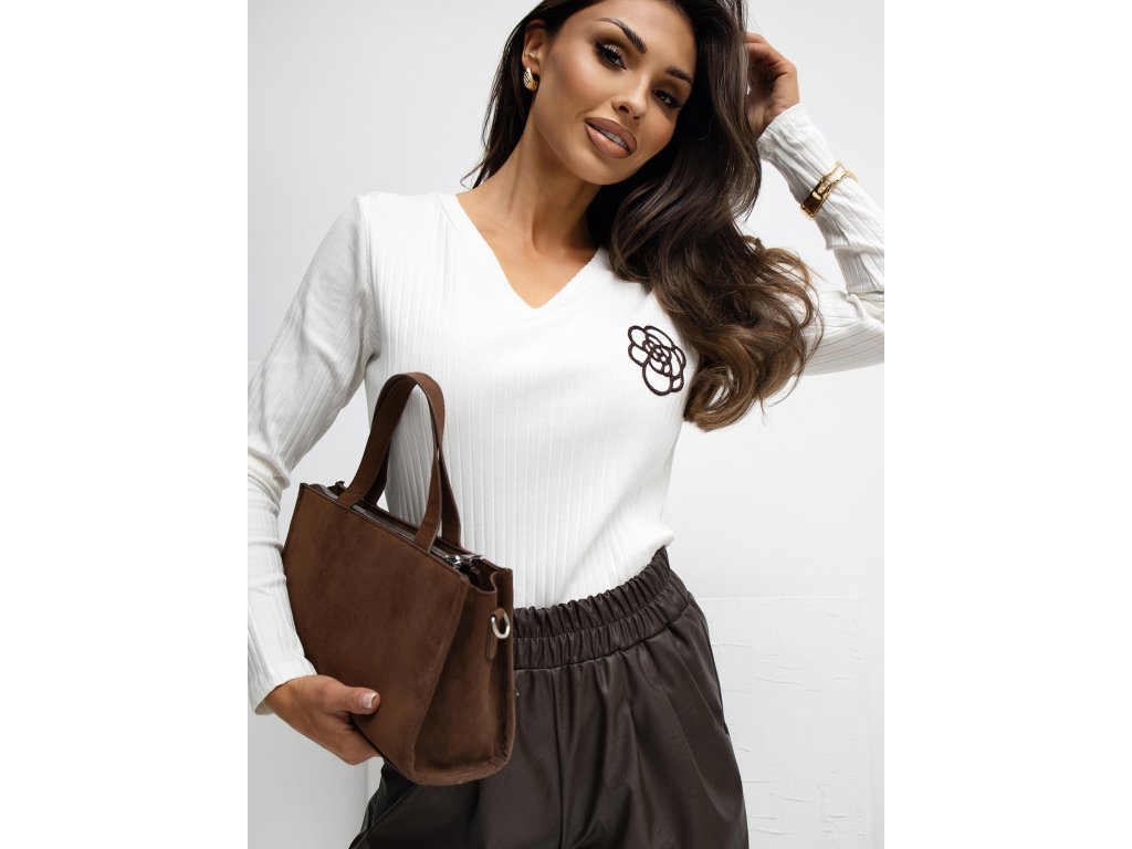 Dámske tričko s dlhým rukávom Wanin je elegantné a pohodlné dámske úpletové tričko, ktoré krásne doplní váš každodenný šatník. Vrúbkovaný elastický materiál sa príjemne prispôsobí postave a pôsobí žensky a moderne. Véčkový výstrih dodáva tričku jemnú eleganciu, zatiaľ čo decentná výšivka na prsiach vytvára štýlový detail.