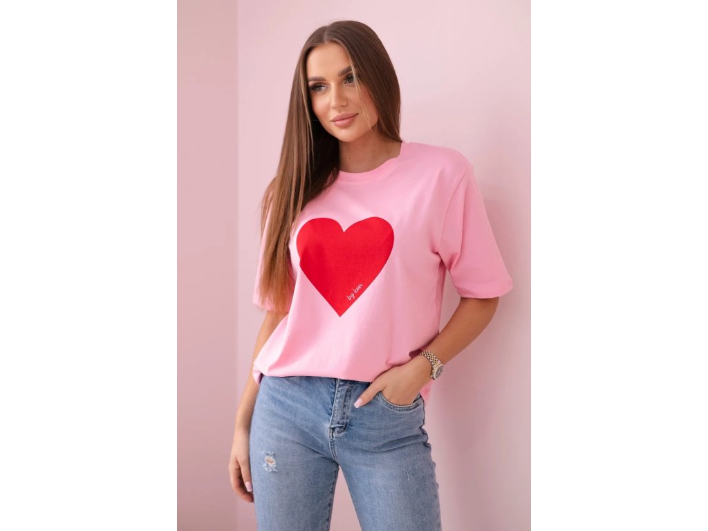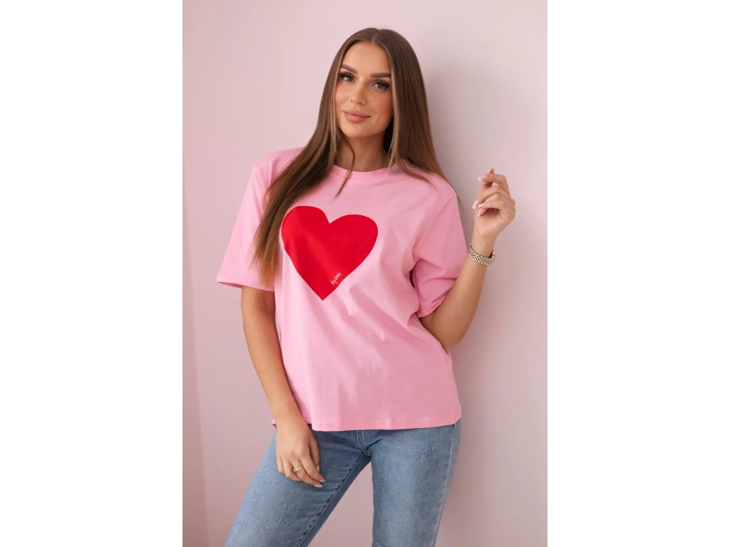 Tričko má klasický rovný strih s krátkymi rukávmi a okrúhlym výstrihom. Jeho hlavným prvkom je romantická potlač v podobe srdiečka na prsiach, ktorá mu dodáva ženskosť a jemnú romantickú atmosféru. Tričko je vyrobené z vysoko kvalitnej bavlny, vďaka čomu sa pohodlne nosí po celý deň. Bavlna je navyše príjemná k pokožke, vhodná pre alergikov a vďaka prímesy elastanu sa tričko krásne prispôsobí vašej postave.